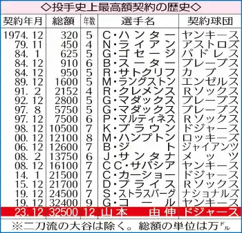 山本由伸 ドジャースと12年462億円で契約合意 メジャー投手史上最長&最高額