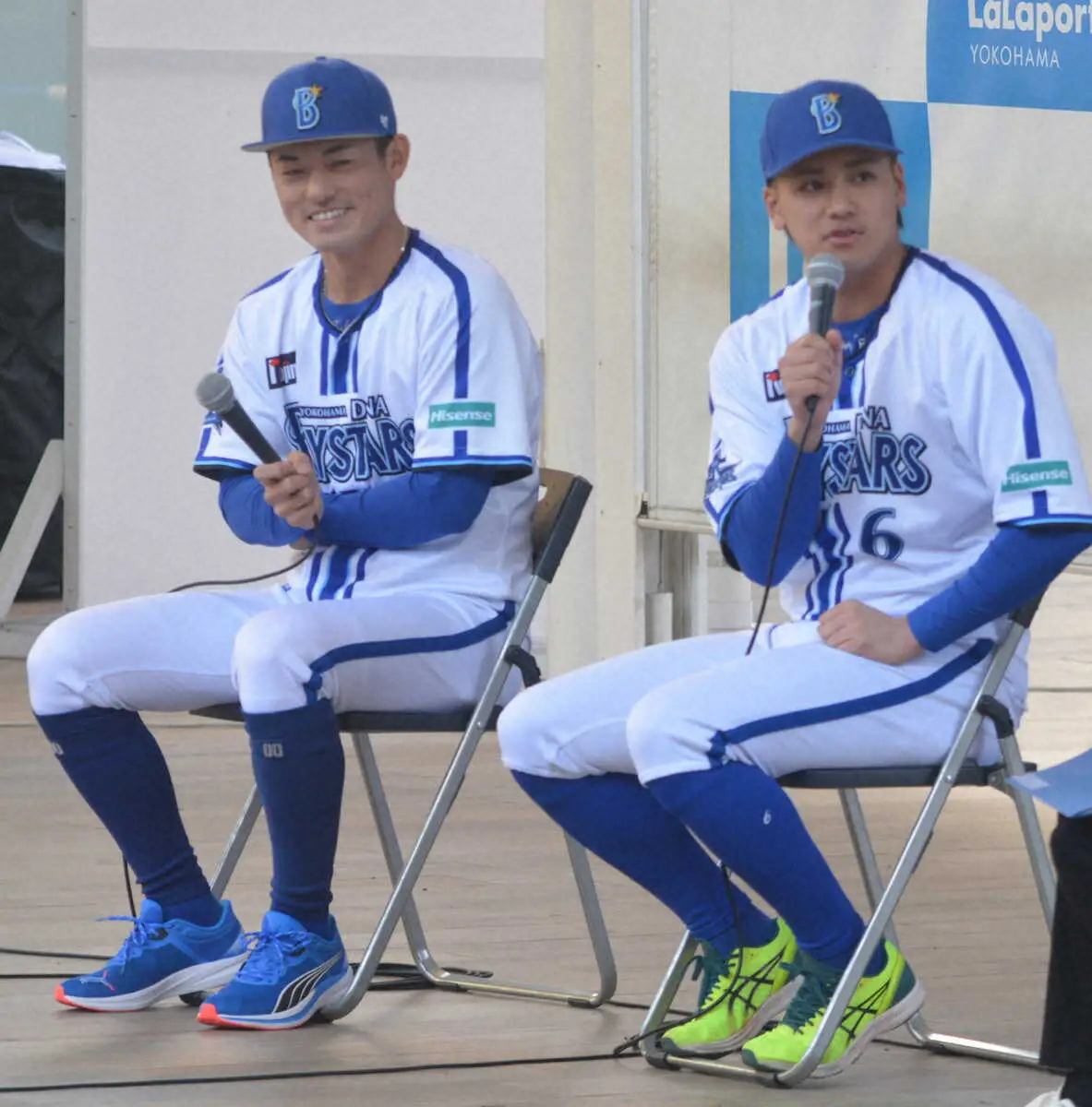 今季は右有鉤(ゆうこう)骨骨折などもあり9試合で打率・167、0本塁打、1打点。61試合に出場した昨年から大きく成績を落とした。一方、ともにトークショーに参加した林は1年目の今季、終盤は遊撃に定着するなど65試合に出場。広島とのCSファーストSでも存在感を示した。