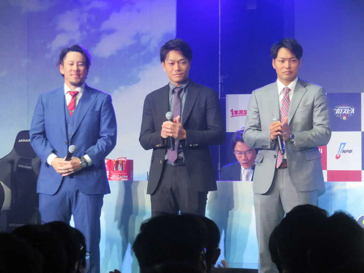 都内でイベントに参加した楽天・田中和(中央)