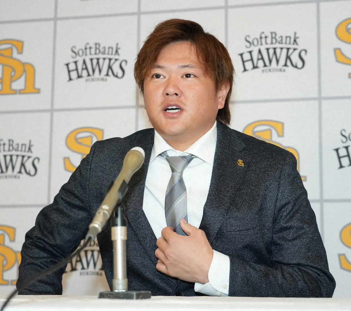 契約更改し会見するソフトバンク・津森(撮影・岡田 丈靖)