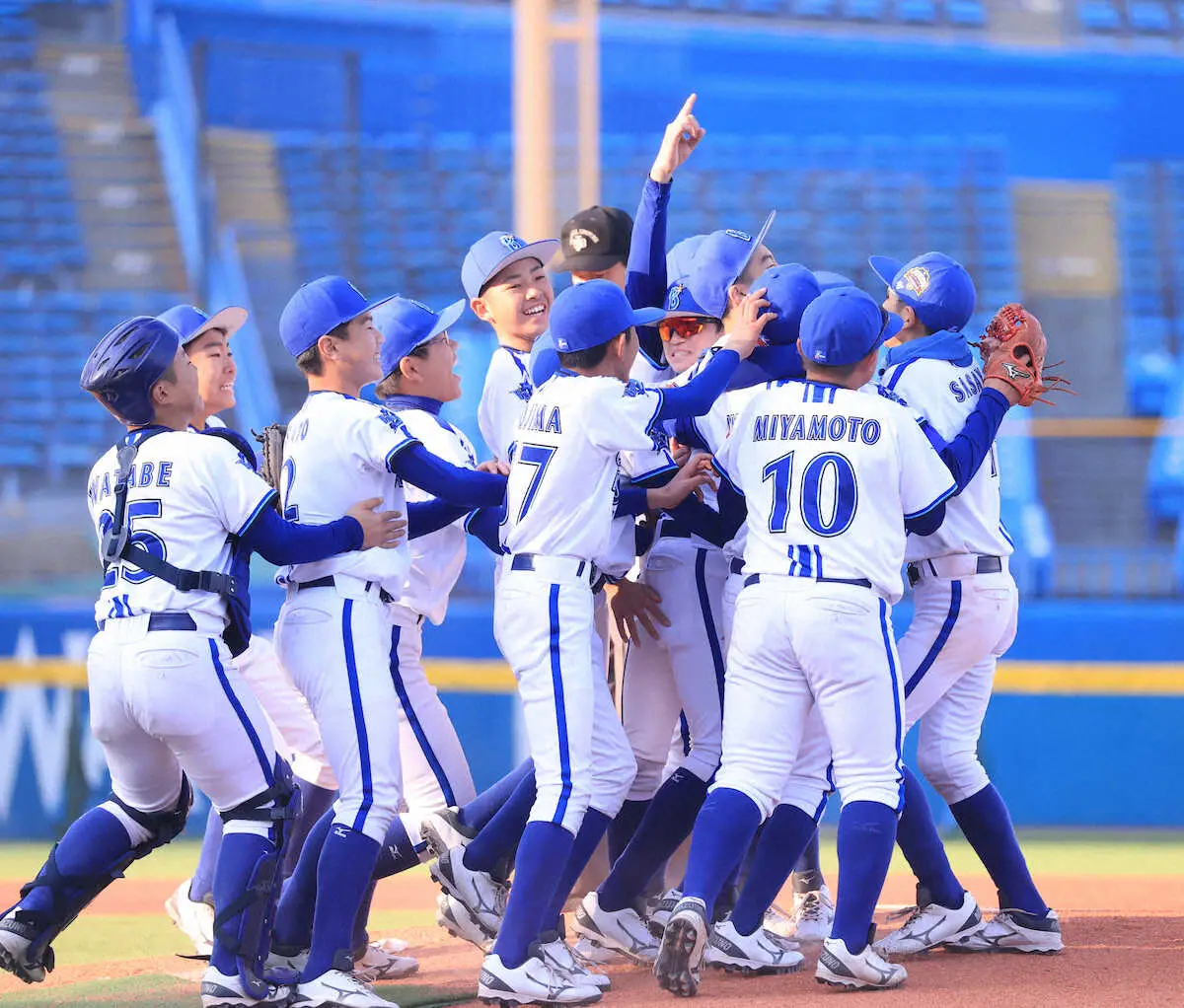 <NPBJr決勝 ジャイアンツJr・DeNAJr>優勝を決め喜ぶDeNAJrナイン (撮影・西川祐介)