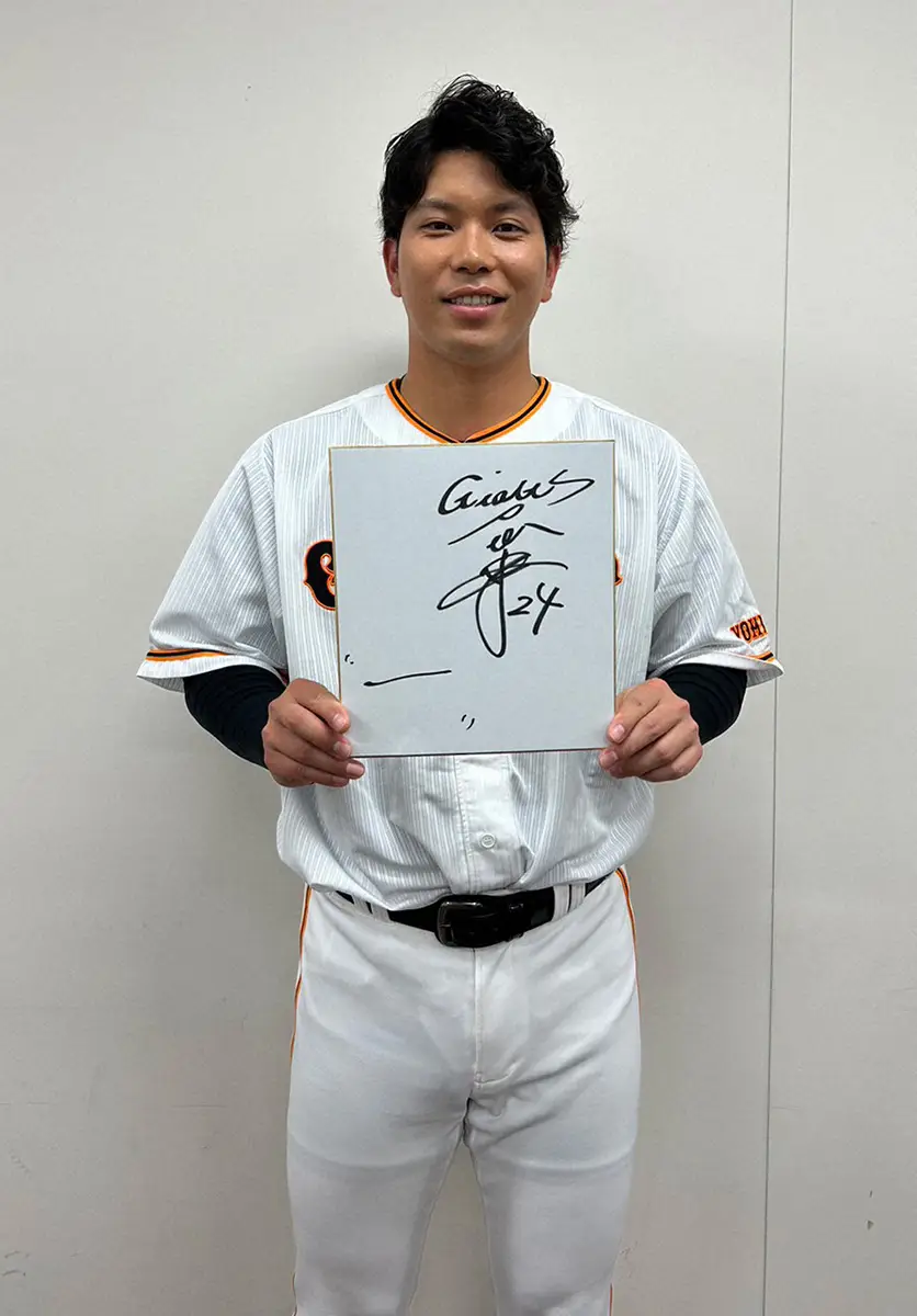 色紙に「一」としたためた巨人・大城卓