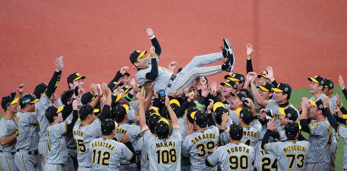 夏の長期ロードに入り、チームの成熟度はさらに増した。8月は18勝7敗で貯金11。「さすがに出来すぎやろ」。指揮官も目を細めた快進撃で、ついに9月14日に球団最速でリーグ優勝を達成。広島と激突したクライマックスシリーズ(CS)ファイナルステージは3連勝で突破し、日本シリーズはオリックスを4勝3敗で下した。