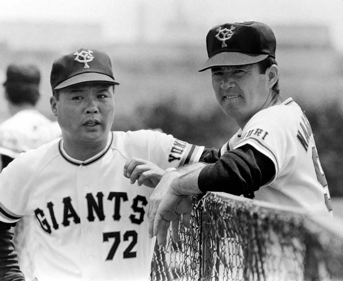 78年、長嶋監督(右)と打ち合わせする木戸コーチ
