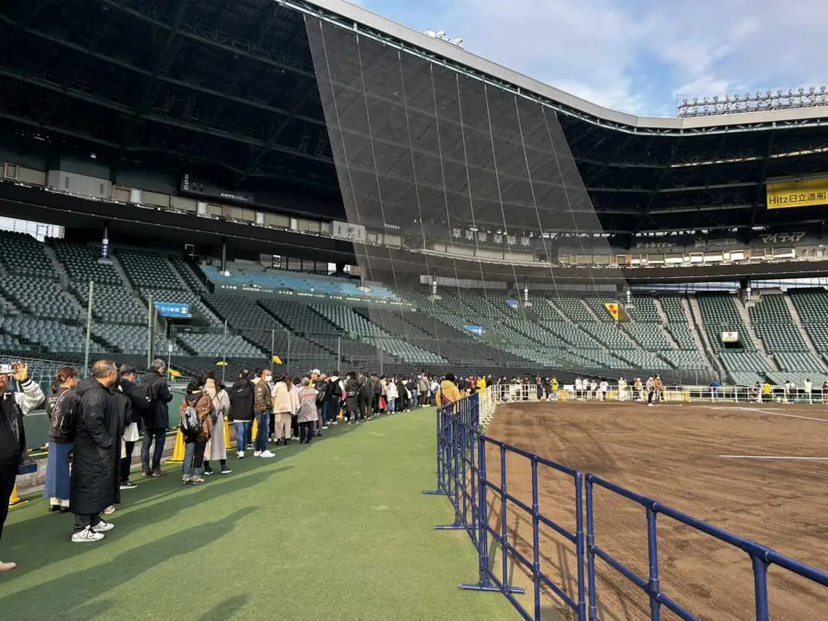 毎年恒例の阪神ファンクラブ会員イベント「甲子園詣」が行われ、聖地が虎党でにぎわった。メンバー歴10年以上が対象で、抽選で選ばれた2000人がグラウンド、ブルペンなどを見学し、マウンドに立てられた、しめ縄に手を合わせた。