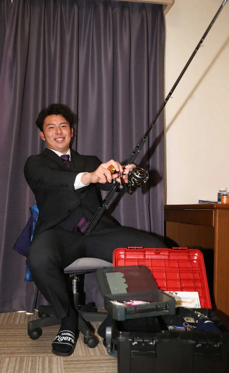 阪神ドラ2椎葉 セ界の“大物釣り”意欲! 釣り竿を手に入寮 猛者との対戦は「燃えると思う」