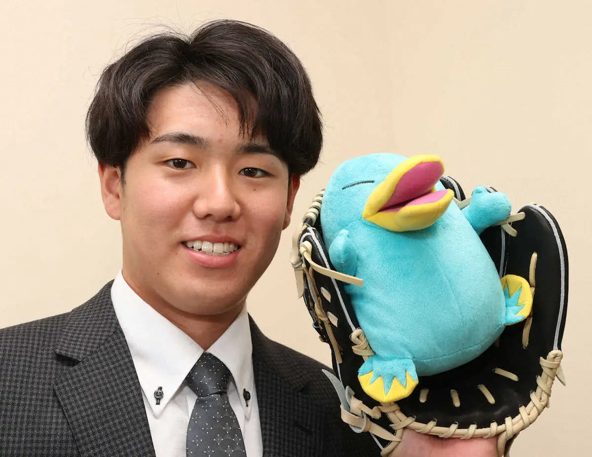 ヤクルト育成2位・高野が目指すのはベイマックス?大きなぬいぐるみとともに入寮