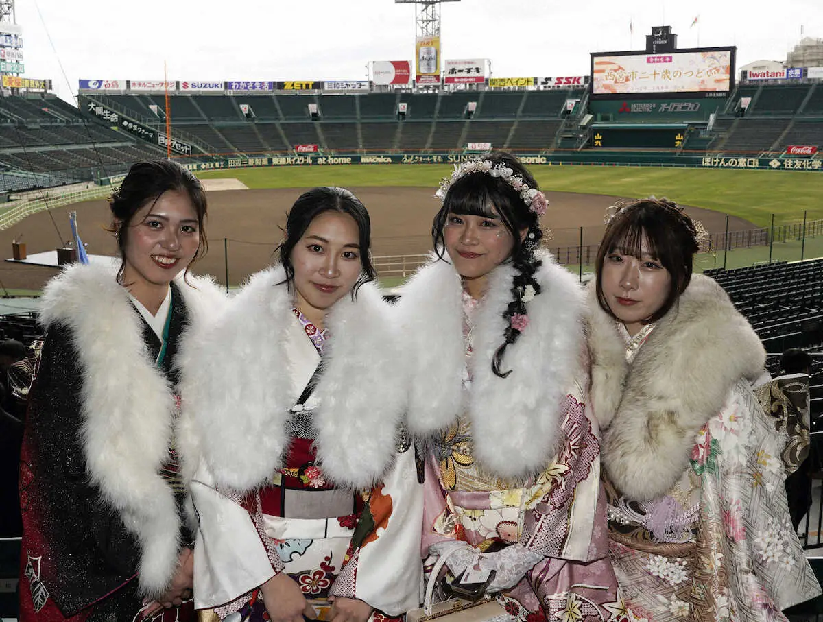 兵庫県西宮市主催の「二十歳のつどい」(旧成人式)が8日、甲子園球場で行われ、3640人が参加した。同球場での開催は5年連続5回目。