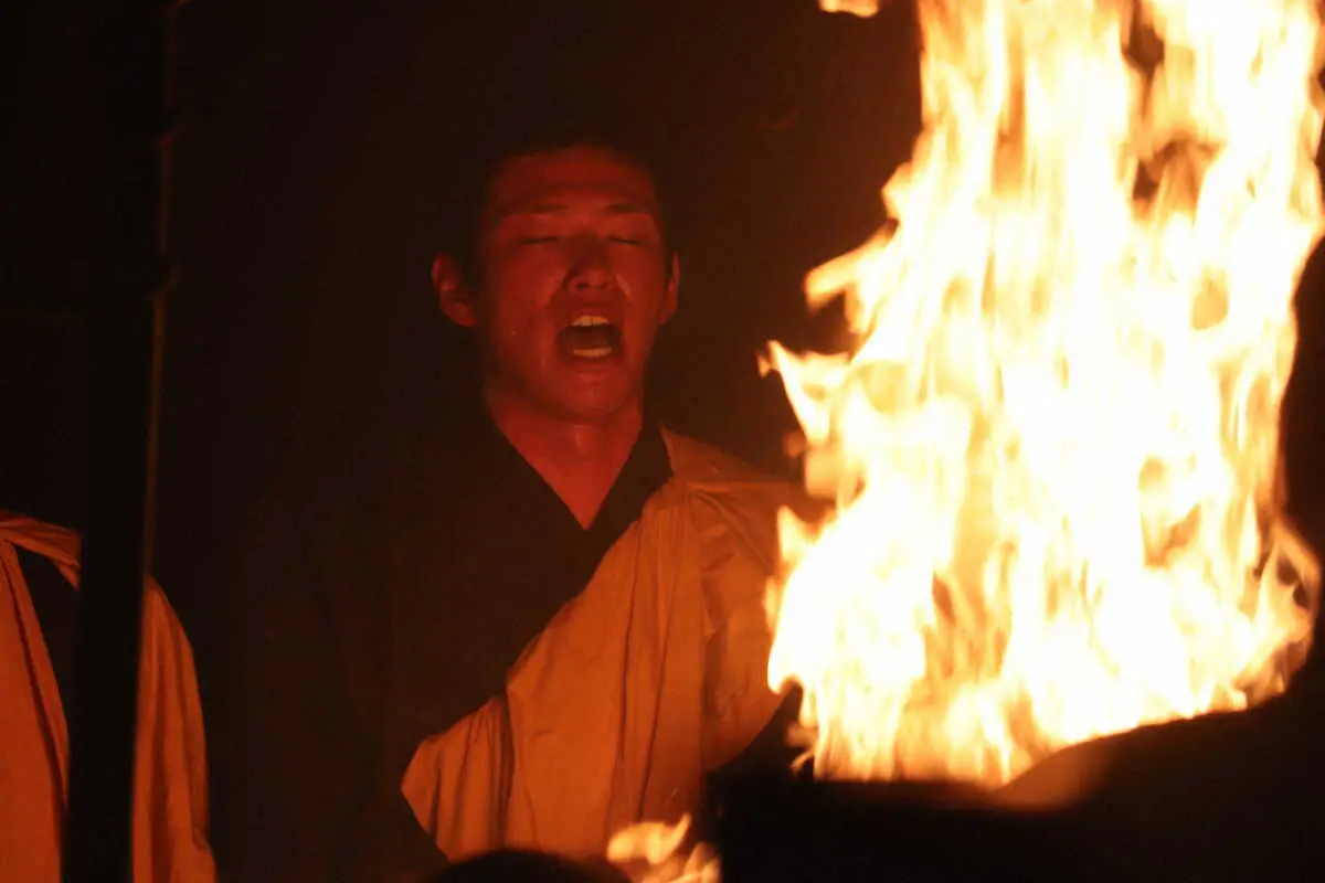 摂氏約400度超の熱さに耐えて己の心を鍛える荒行では、約1時間で護摩木1600枚がくべられ、終了後は各選手、火ぶくれで顔面が真っ赤になるなど、行の過酷さを物語っていた。