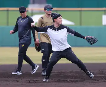 阪神・チーム「糸原組」の糸原、大山、小野寺が自主トレ公開 大山「いい準備をしてキャンプを迎えたい」