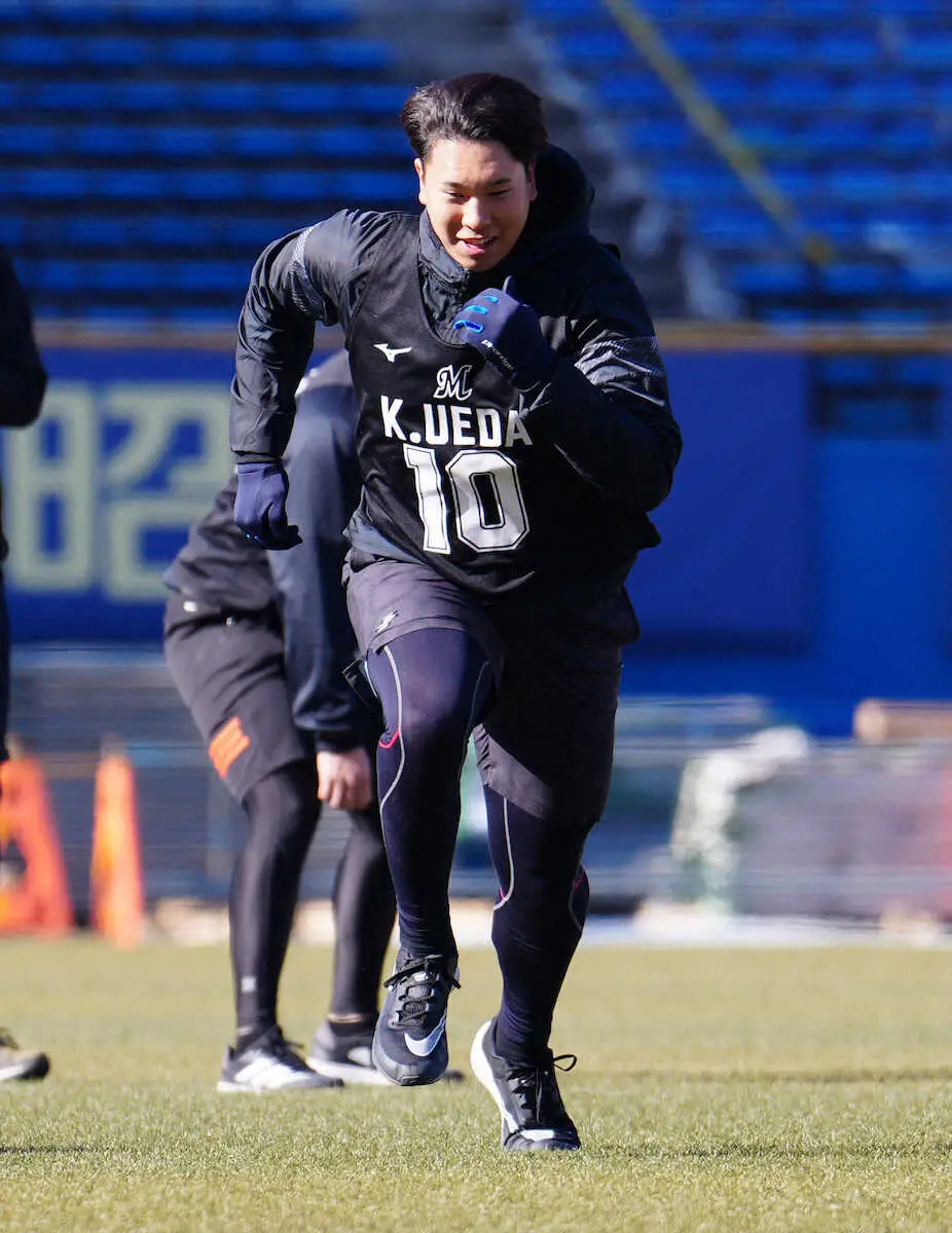 ロッテの新人合同自主トレがZOZOマリンでスタートし、ドラフト1位・上田(明大)が早くもリーダー格として存在感を示した。育成を含む新人10選手中7人が高卒。上田は「いろいろな面で見本にならないといけないし、まずは自分が先頭を切っていきたい」と決意表明した。