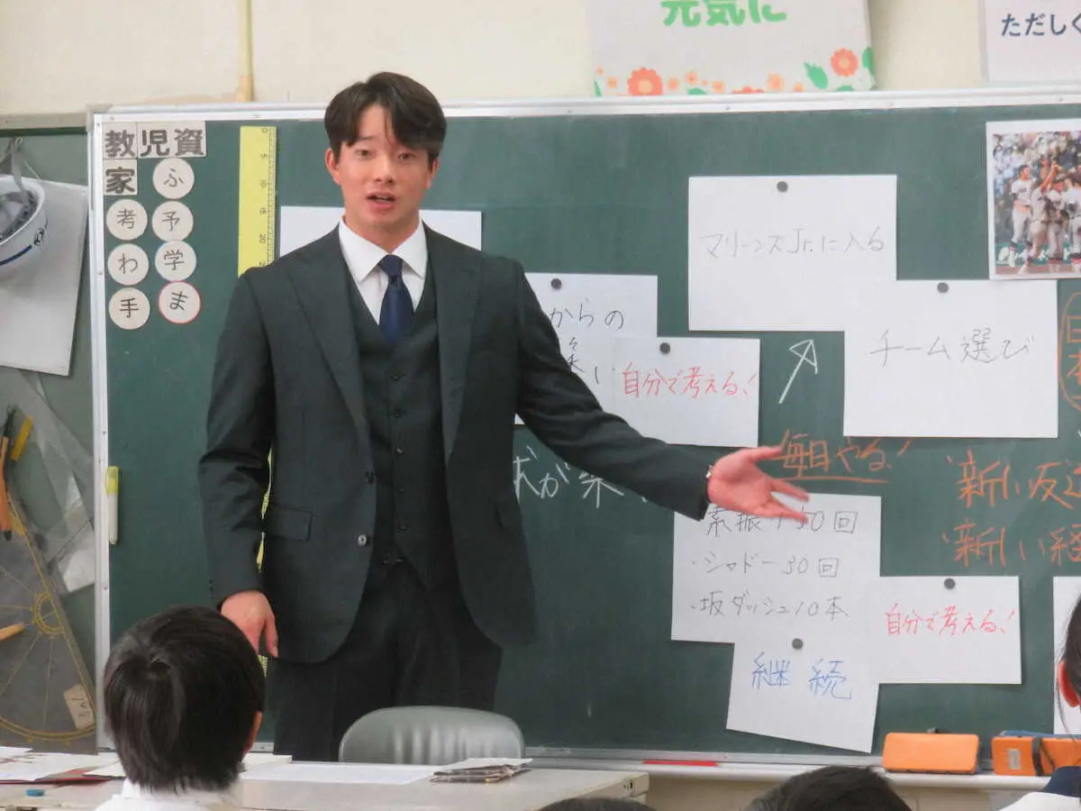 ヤクルト・木沢が“夢先生”として小学校で授業「自分で考える」「継続」の大切さを説く