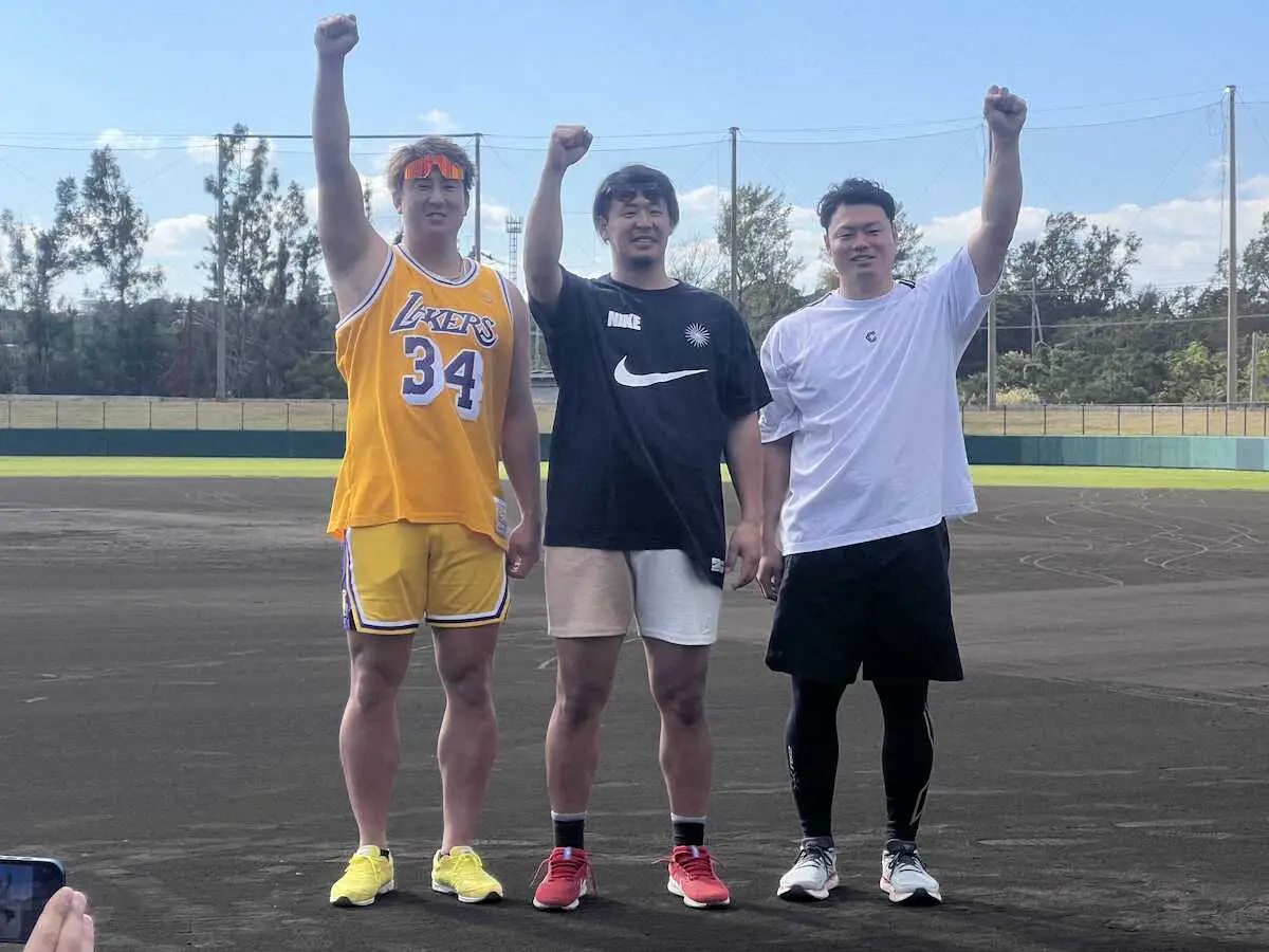 沖縄県内で自主トレを公開した「浅村組」。(前列左から)西武・外崎、楽天・大河原、西武・古市、中日・志垣(後列左から)楽天・阿部、ロッテ・愛斗、楽天・浅村、オリックス・杉本、中日・細川(撮影・花里 雄太) Photo by スポニチ 楽天・浅村が三塁への転向を明言 オリックス・宗モデルのグラブを手に「… ギャラリーで見る この記事のフォト 2024年01月13日の画像一覧 もっと見る 2024年01月13日の画像をもっと見る