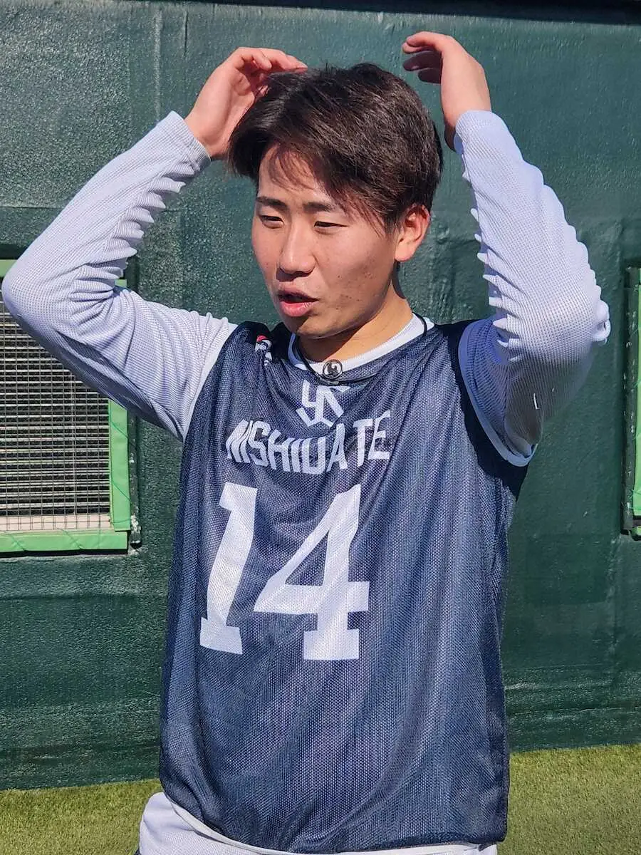 「基礎体力を付けることを共通認識でやっている。キツいのは仕方がない」と汗を拭いつつ、高卒出身のルーキーに負けているのが悔しそう。