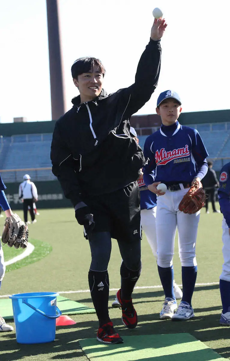 6日から長崎で総勢18人の“和田塾”を行っているが、オフだった11日に一部報道が出た。西武からFA加入した山川の人的補償として自身の名前が挙がったのだ。小久保新監督には有原とともに開幕ローテーション当確と告げられていたが、28人のプロテクトリスト外だったことが判明。43歳シーズンに挑むベテラン左腕には屈辱的事実であり、国内外から注目を浴びた。“騒動”の後、初の公の場となったが、子供たちとの交流でも癒やされた和田は終始、笑顔を絶やさなかった。