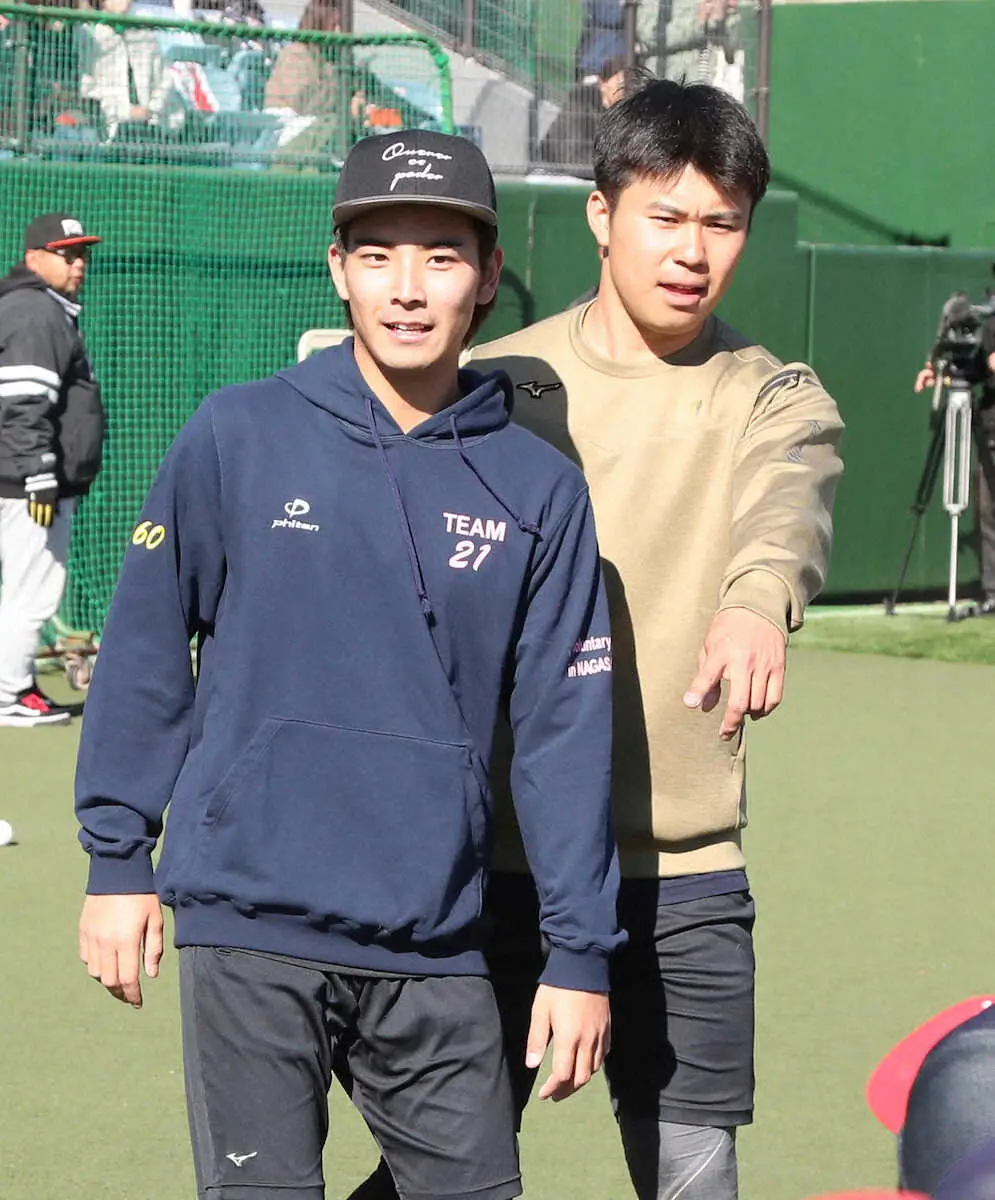 《大野は“落とし球”を狙う》高卒2年目の大野が、初の和田塾で新春から“落とし球”を狙う。「和田さんに体幹から鍛えていただきながらスクリュー(ボール)を投げるようになりたい」。参考とするのは“同門”の田浦や西武・隅田のチェンジアップ。「聞いてアレンジを加えたい」と目を輝かせた。ただ、奄美大島出身の19歳は正月の帰省時、“お年玉”はもらえなかったという。