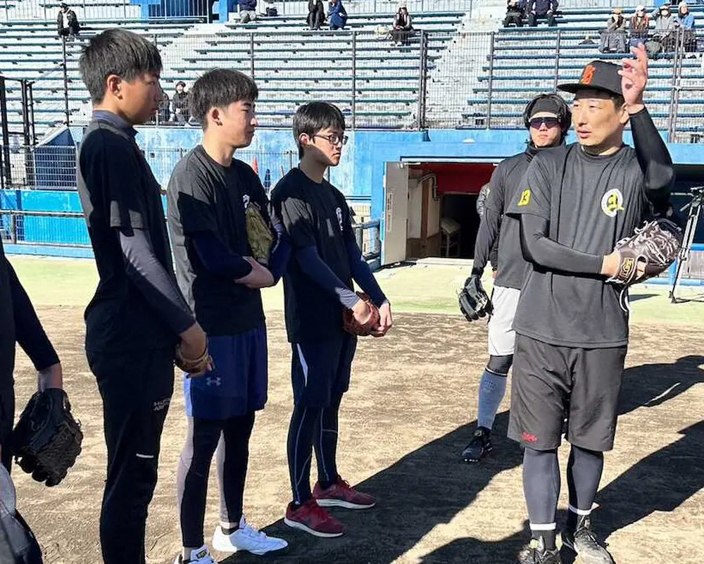 今春から高校に進学し野球部に所属することが決まっている静岡県内の中学生27人が参加し、島本、桐敷ら岩崎と合同自主トレを行う面々も加わってプロの練習メニューを一緒に消化した。岩崎自身、初の試みで「技術は高いなと。高校に入ったら(プロアマ規定で)教えることはできないので。良い機会になった」と意義ある時間を振り返った。