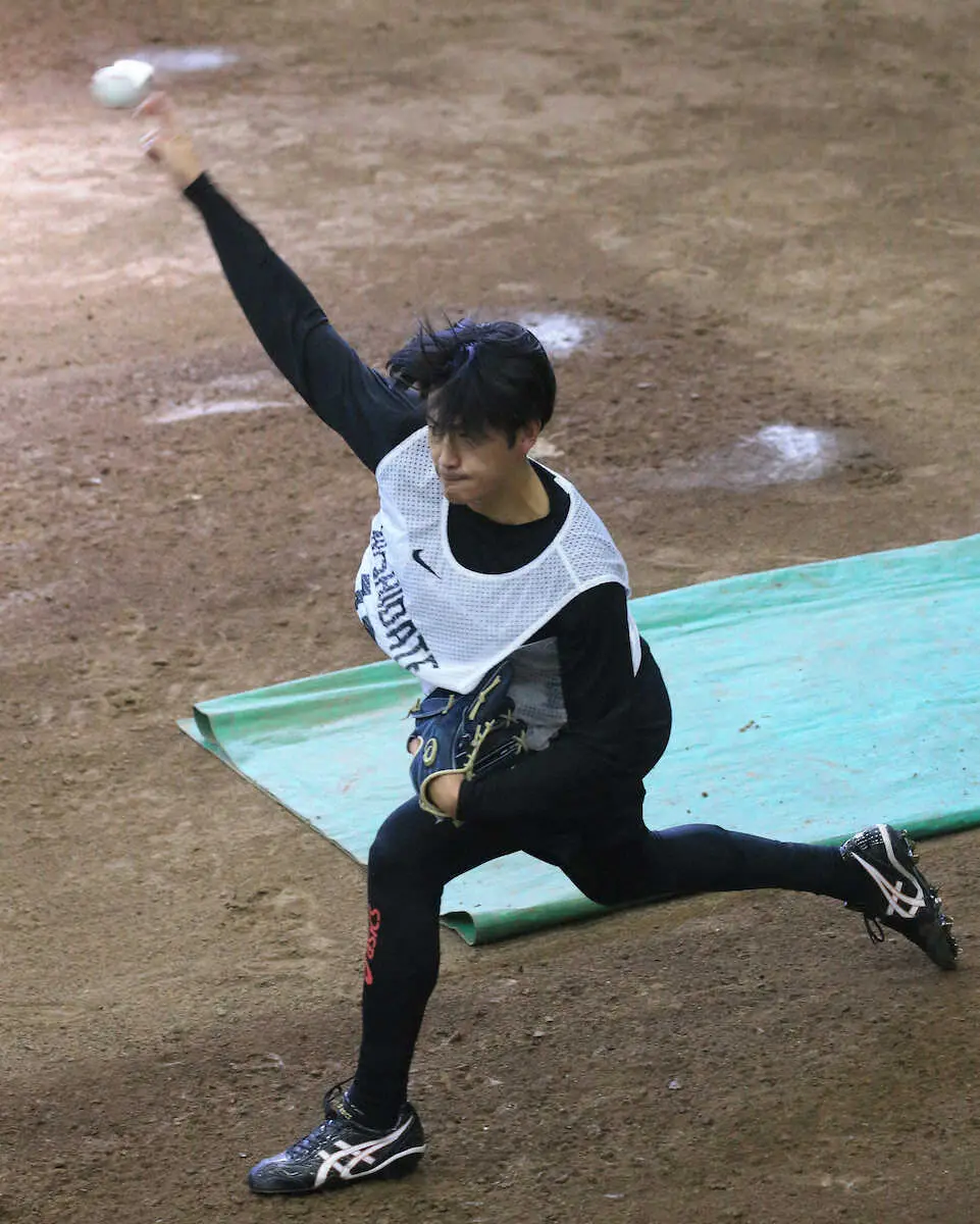 ドラフト2位・森田(Honda鈴鹿)を相手に「そこまで強くは投げてない」と直球のみ24球。ジャイアンツ球場で60メートルの遠投も行った。「一日一日の感覚を確かめながら。焦らずにやっていければ」とキャンプインに向けて徐々に段階を上げていく。
