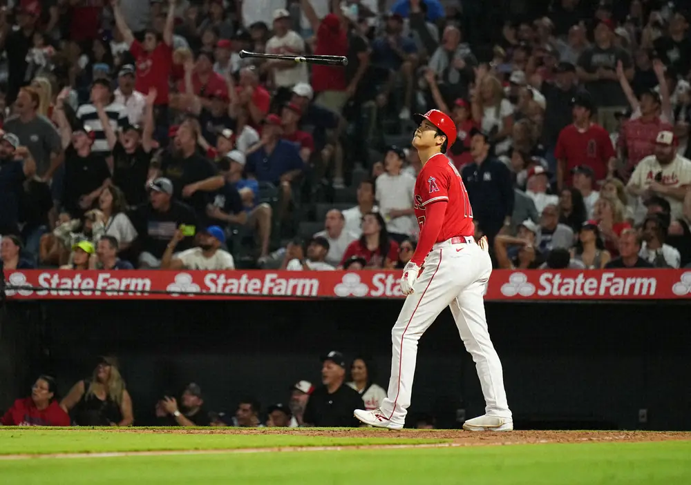 大谷翔平 MLBの23年バットフリップ1位に選出 昨年7月17日ヤンキース戦の左中間への35号2ラン