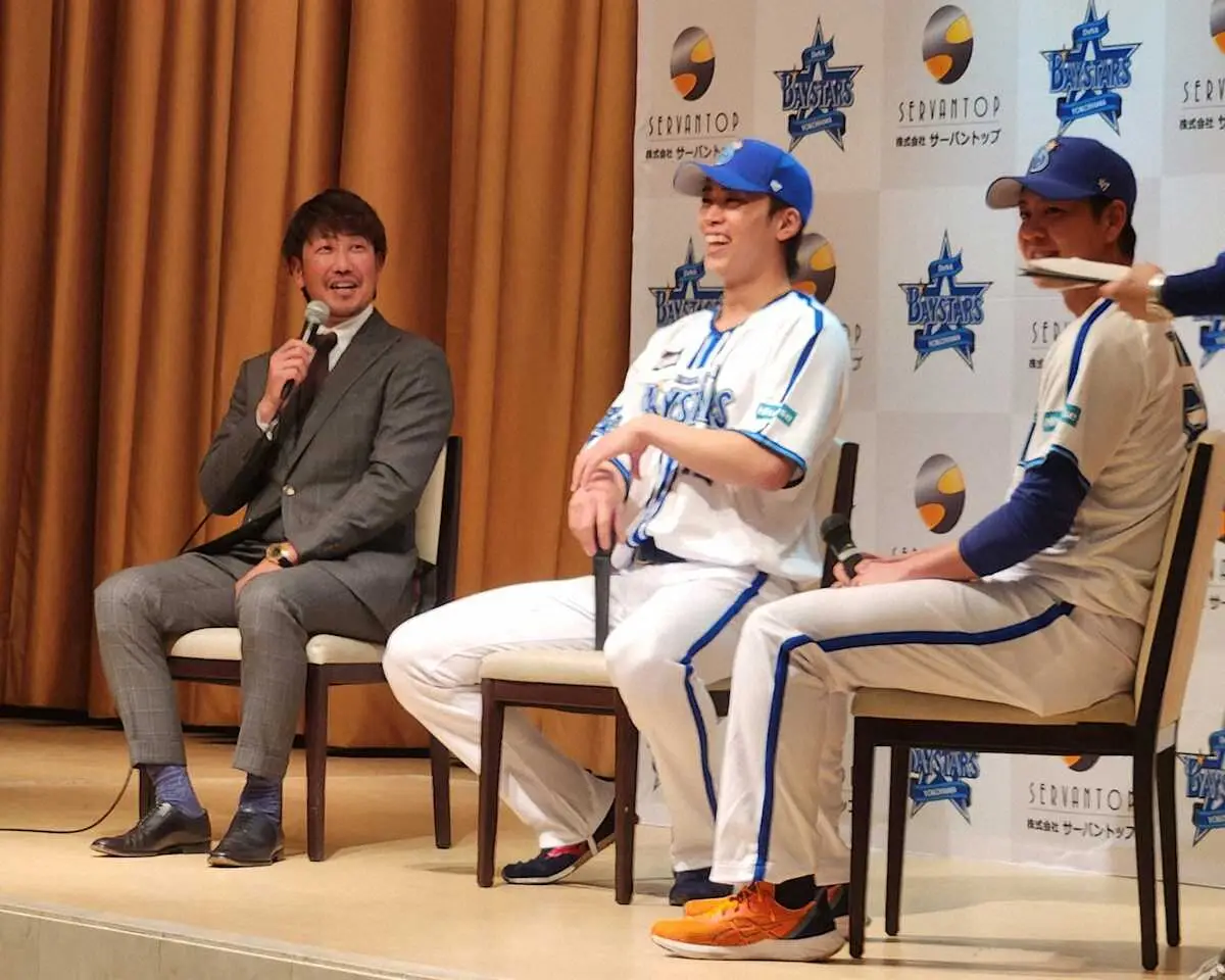 DeNAの入江大生投手、平良拳太郎投手、藤田一也育成野手コーチが21日、横浜市内でトークイベントを開催。2308組の応募の中から抽選で選ばれた150組、300人のファンを軽妙なトークなどで沸かせた。