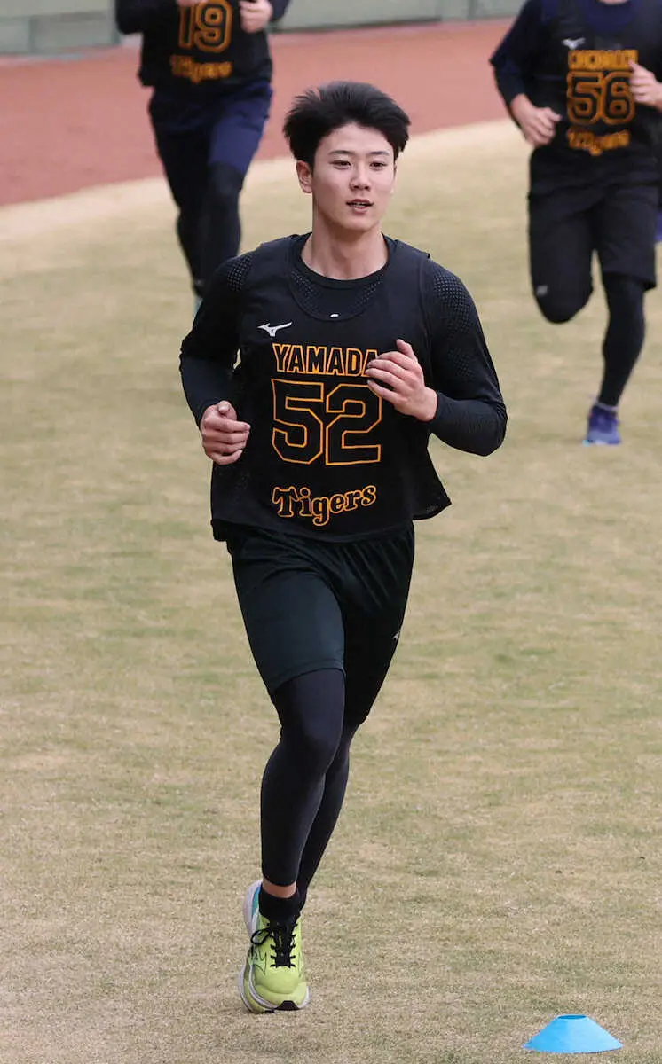 クセなくケガなく、1軍デビューへの道を快走する。阪神のドラフト3位・山田(仙台育英)が、新人合同自主トレの一環として行われた3000メートル走を1着でゴール。同じ高卒の同4位・百崎(東海大熊本星翔)を1秒差でかわした。軽やかな身のこなしで、涼しい顔をして走りきった。