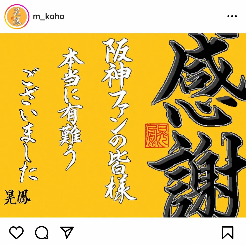 書道家・晃鳳氏インスタグラム(@m_koho)から 阪神公式グッズ手掛けた書道家 昨年限りで「契約が解除」 選手名を揮ご… ギャラリーで見る この記事のフォト 2024年01月25日の画像一覧 もっと見る 2024年01月25日の画像をもっと見る