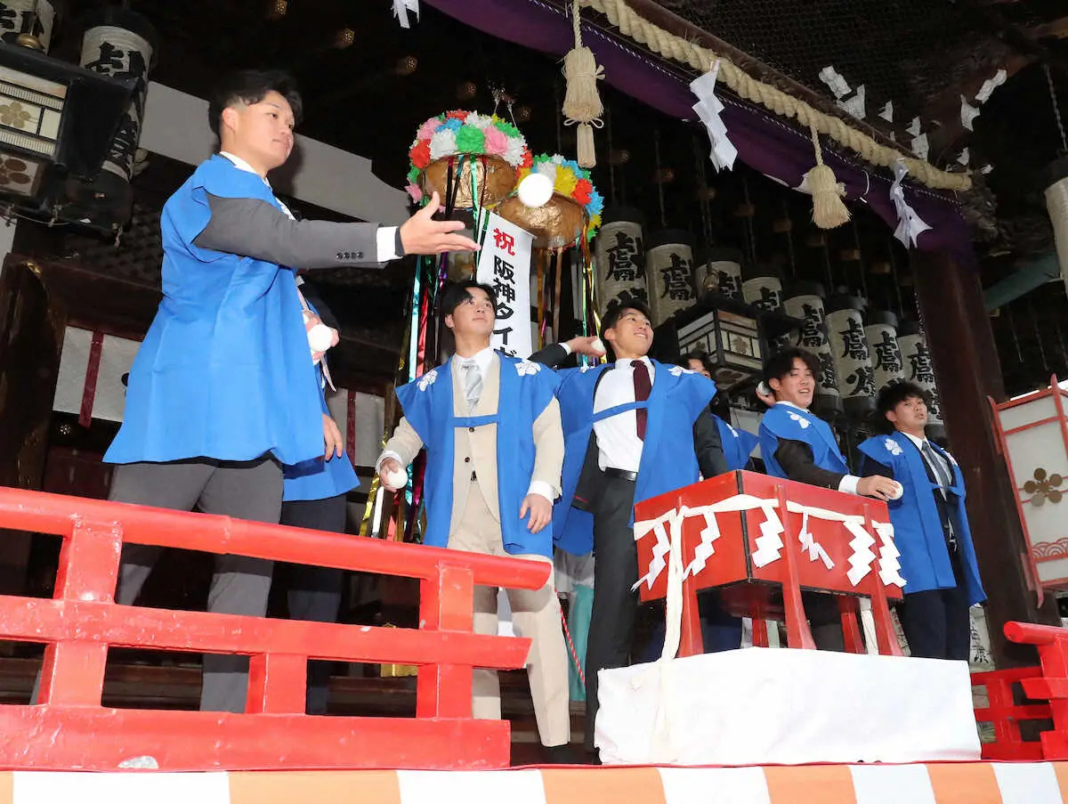 大阪天満宮の福玉行事に参加した森下(左)ら (撮影・後藤 大輝)