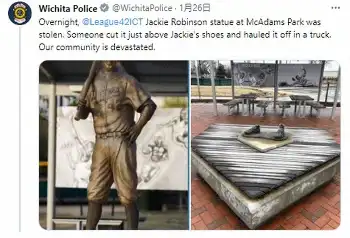 黒人初のメジャーリーガー、ジャッキー・ロビンソンの功績を称える像が、カンザス州ウィチタの公園から盗まれたとESPNが26日(日本時間27日)報じた。