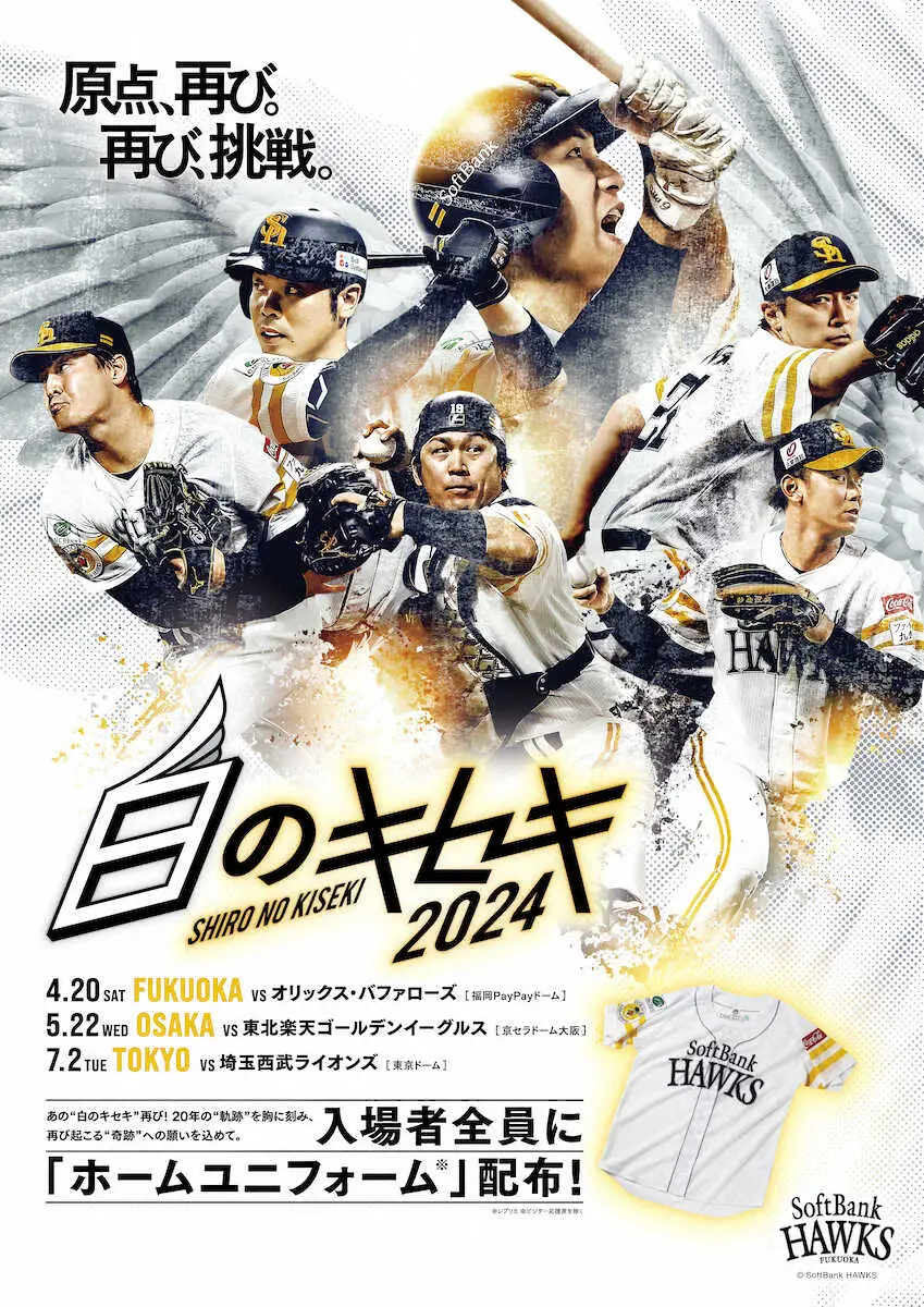 ソフトバンクは29日、今季、ユニホーム配布イベントの原点「白のキセキ 2024」を復活、3試合開催すると発表した。