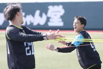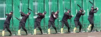 “虎のロクレンジャー”参上!?沖縄先乗り自主トレのアップ中にカラフルな“猛虎軍団”が集結