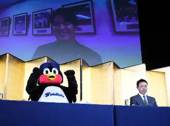 ヤクルト・つば九郎「おおとり」契約更改 年俸6万円+ヤクルト1000、ジョア飲み放題でサイン