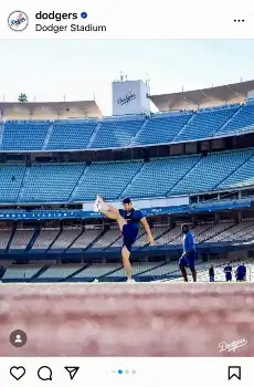 ドジャースが筋骨隆々な大谷翔平のトレーニング姿を公開 球団Tシャツ&短パン姿に「ブルーが似合う」
