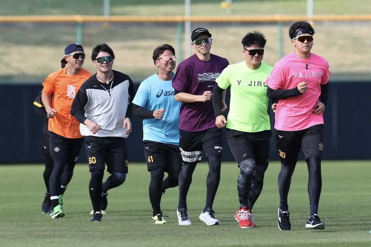 “虎のロクレンジャー”参上!?沖縄先乗り自主トレのアップ中にカラフルな“猛虎軍団”が集結