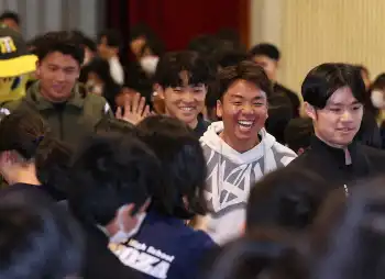 阪神・春季C前恒例 沖縄で学校訪問 歓声に中野「頑張ろうという気持ちに」 4年ぶりに実施