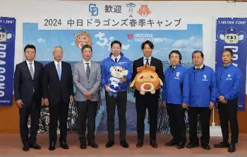 中日・立浪監督が沖縄・北谷町役場など表敬、最下位からの巻き返し誓う「しっかり、やらないと」