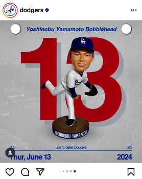 また、山本由伸のボブルヘッドは6月13日のレンジャーズ戦で配られる。