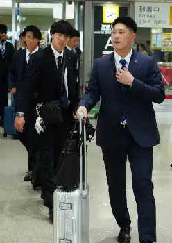 DeNA・三浦番長4年目の「進化」へ キャンプ地到着 ドラ1コンビ、松尾、度会は仲良く空港到着!