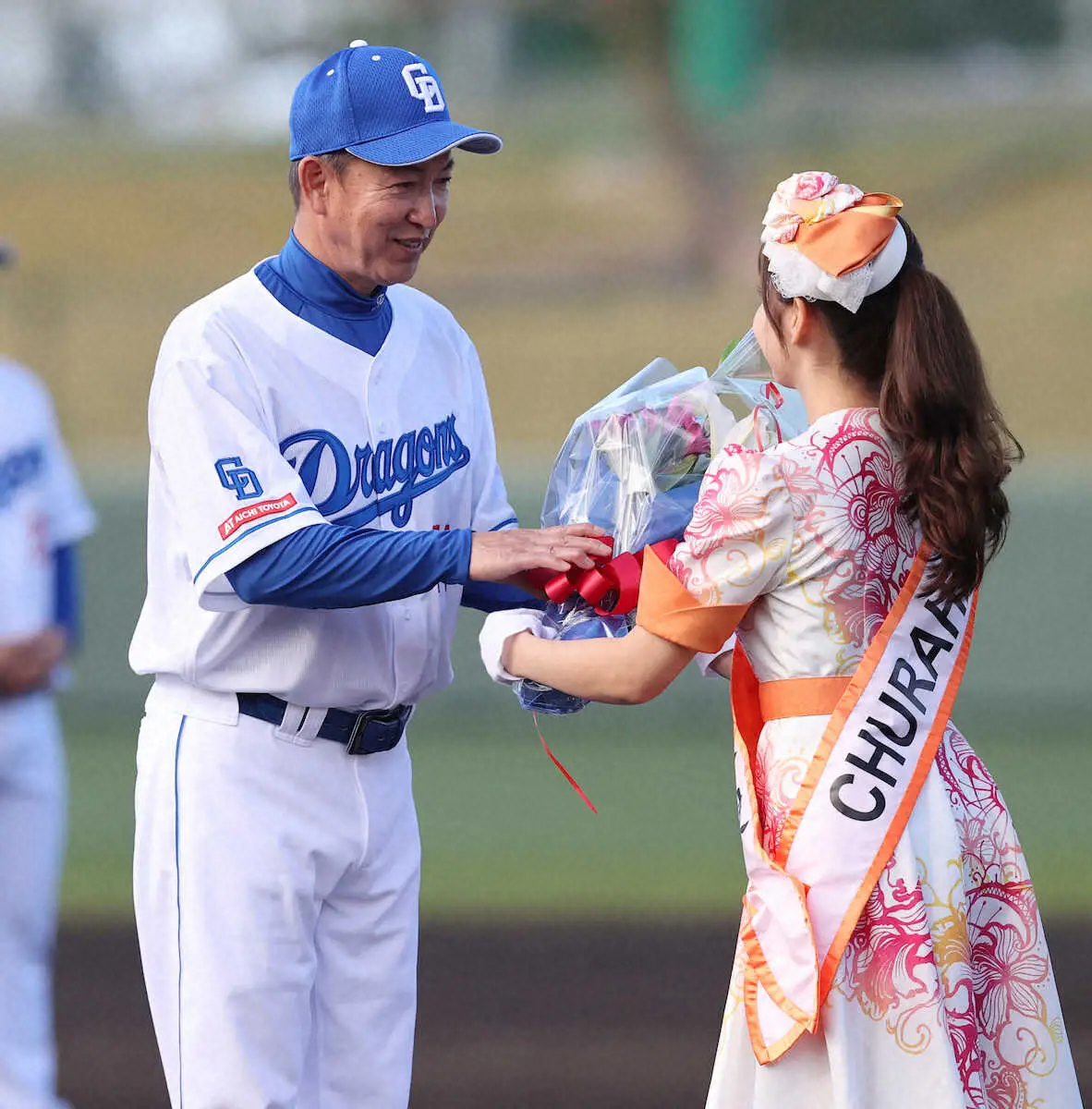 歓迎セレモニーでは北谷町から花束が贈られ、指揮官は「本当に頑張らないといけないなという気持ちです。優勝を目指していく」と決意を語った。