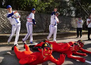 中田大爆笑 鬼役ドアラが“逆ギレ”「いつもやられるだけだと思わないほうがいい(笑)」報道陣にも暴挙