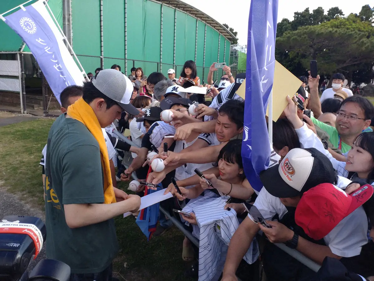 ロッテ・佐々木朗希投手(22)が3日、沖縄・石垣キャンプで即席サイン会を行った。