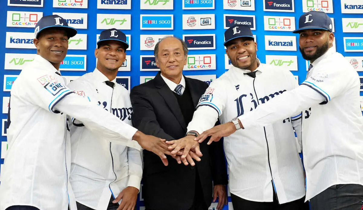 西武の新外国人4選手が埼玉県所沢市の球団施設で入団会見に臨んだ。昨季ヤンキースで45試合に登板した最速163キロ右腕・アブレイユは、自身の背番号54にちなみ「54セーブ挙げたい」。シーズン54セーブは、17年にサファテ(ソフトバンク)がマークしたプロ野球記録と聞くと「気持ちが強いので、55セーブ挙げられるように」と上方修正した。