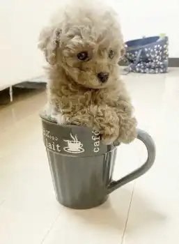 ティーカッププードルの中でも「マイクロ」と呼ばれる小さな犬種で名前もそこから取って「ティーちゃん」です。最初は本当にティーカップに入るぐらいのサイズでした。