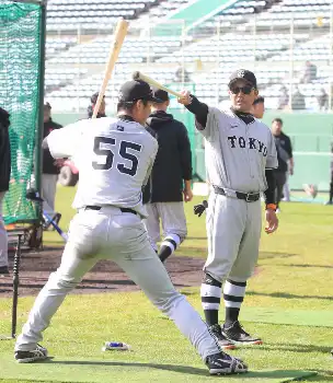 巨人・阿部監督 秋広に打撃の極意伝授 両腕を動かし右足も上げるダイナミックな動きで本塁打量産