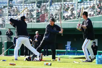 約45分間、松井コーチ、阿部監督、二岡ヘッド兼打撃チーフコーチらが見守る前で、ティー打撃などを行い「後ろを見たら阿部さんいて、前を見たら二岡さんがいて、横を見たら松井さんいて。夢かと思った。夢かと思いましたけど、いろんな話を聞けたのでこの時間を無駄にしないように頑張りたいと思います」と感謝していた。