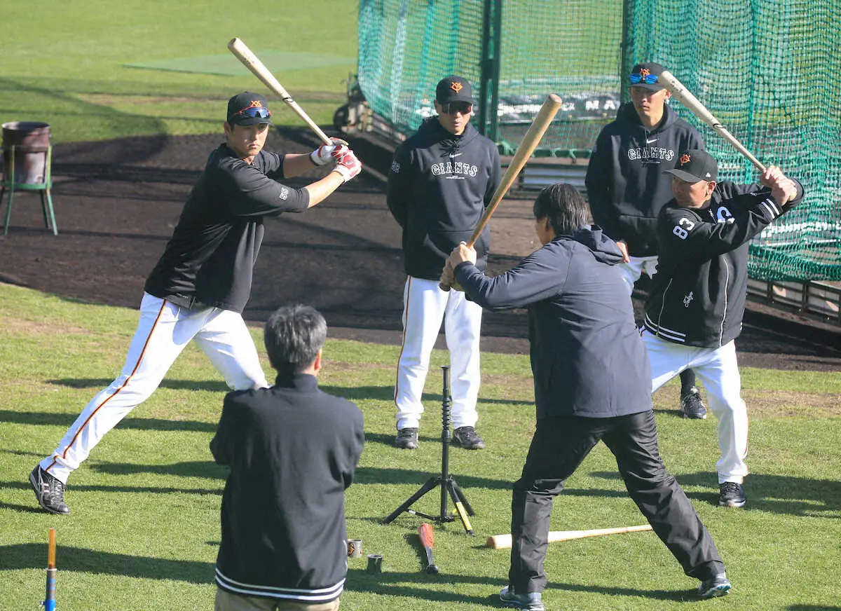 巨人の秋広優人内野手(21)が10日、背番号55の先輩・松井秀喜臨時コーチ(49)から、打撃指導を受けた。