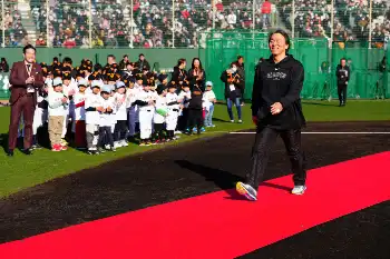 巨人・松井臨時コーチ “要求通り”レッドカーペットでド派手登場「冗談で言ったけどまさか実現するとは」