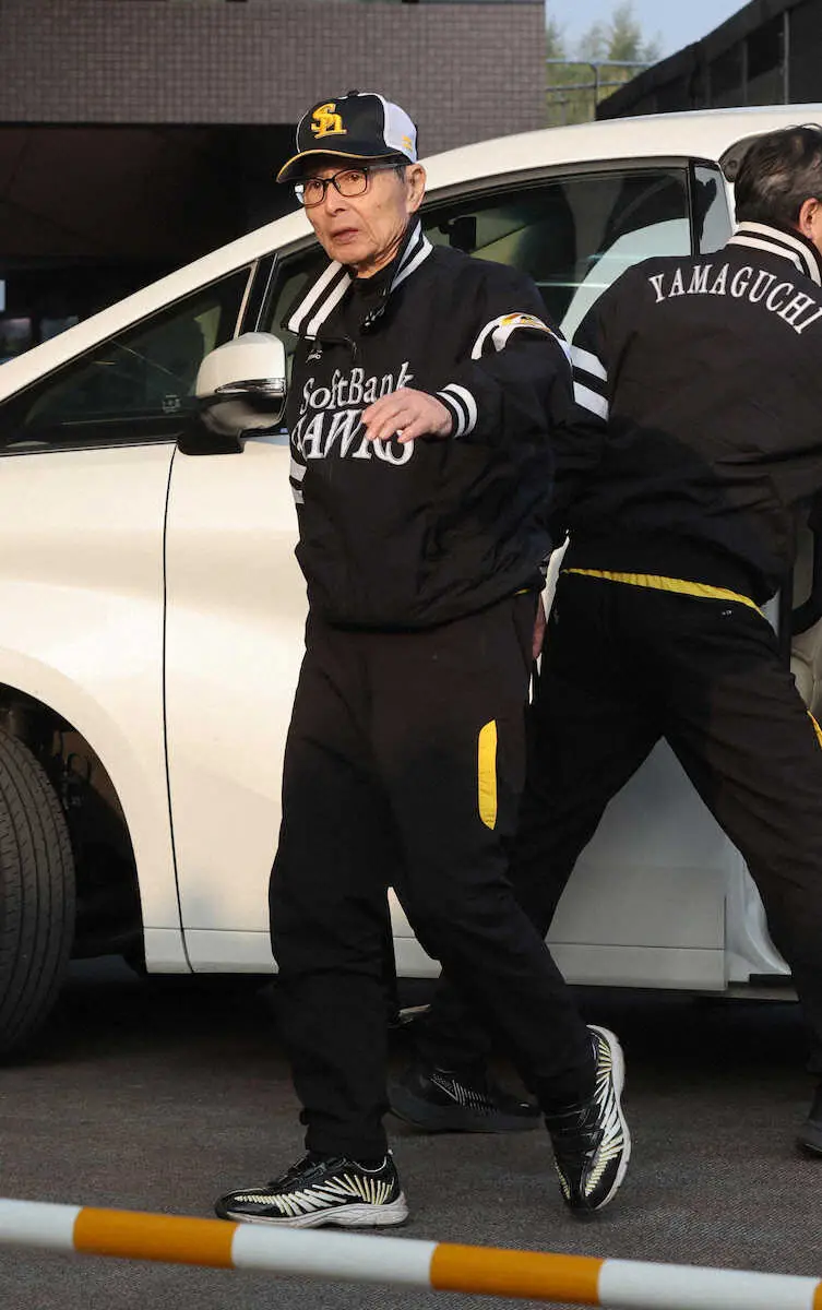 <ソフトバンク宮崎キャンプ>球場入りする王会長 (撮影・成瀬 徹)