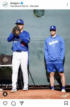 ドジャースの公式インスタグラムは山本が投球練習を行う後ろで投球を見守る大谷の様子を投稿。「全員が山本に注目」とつづった。