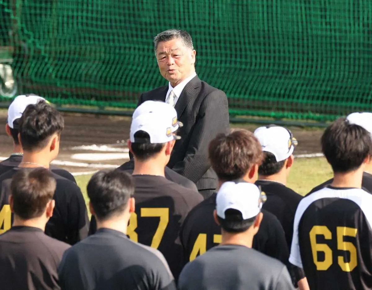 <阪神宜野座キャンプ>記念撮影する(左から)亀山氏、末永氏、岡田監督、川藤氏、桧山氏(撮影・須田 麻祐子) Photo by スポニチ 阪神OB会のキャンプ陣中見舞いで川藤OB会長が大山、近本、青柳が連覇への… ギャラリーで見る この記事のフォト 2024年02月13日の画像一覧 もっと見る 2024年02月13日の画像をもっと見る
