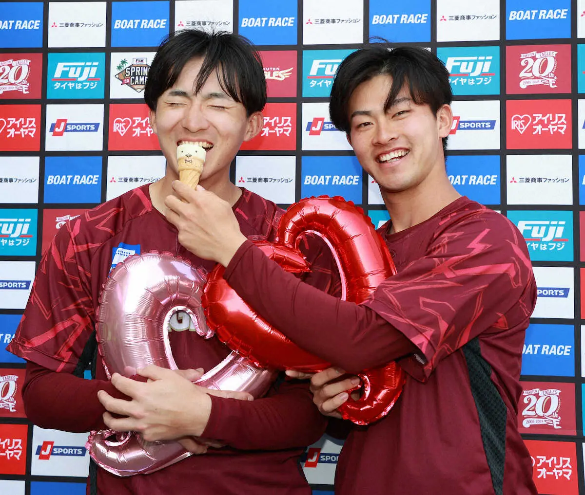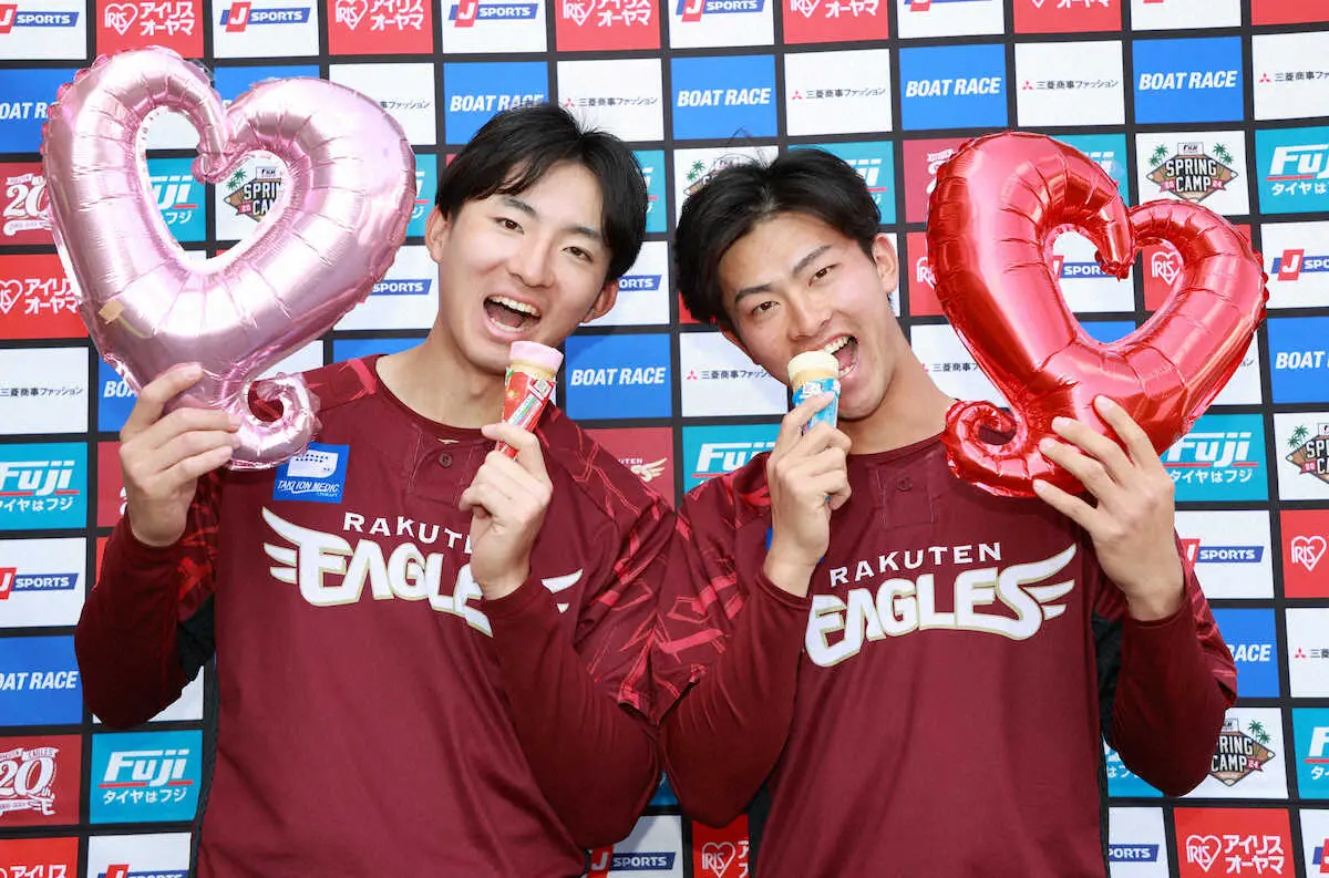 <楽天金武キャンプ>お互いにチョコを食べさせあう荘司(左)と古謝(撮影・篠原岳夫) Photo by スポニチ 楽天ドライチコンビの荘司と古謝、バレンタインデーを前にチョコ交換でコ… ギャラリーで見る この記事のフォト 2024年02月13日の画像一覧 もっと見る 2024年02月13日の画像をもっと見る